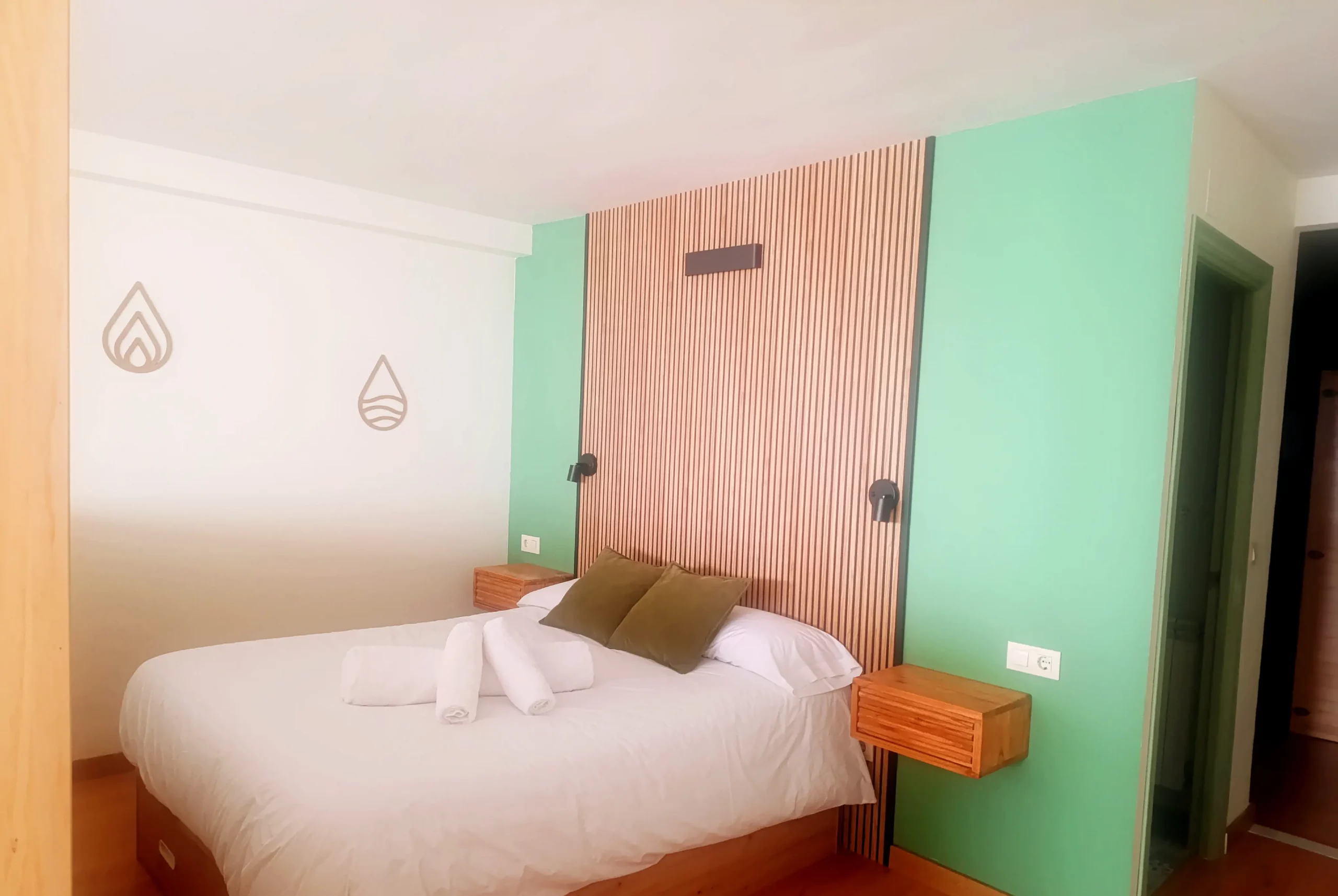 - Baño con secador de pelo, toallas 100% algodón orgánico, gel, champú y columna de ducha de hidromasaje.